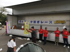 去る9月28日(日)江津市にて(公社)島根県トラック協会江津支部主催でトラック引きレースが開催され、田原副会長率いる田原資材株式会社チームで商工会職員も出場して参りました。