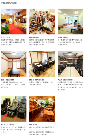 | ホームページ | 味処 柿の里:https://kakinosato.jimdosite.com/ かきのき温泉 はとのゆ:https://hatonoyu.jimdosite.com/ |