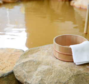 お湯は鉄分と炭酸成分を多く含み、空気に触れると徐々に柿のような明るい濁り湯へと変化します。
